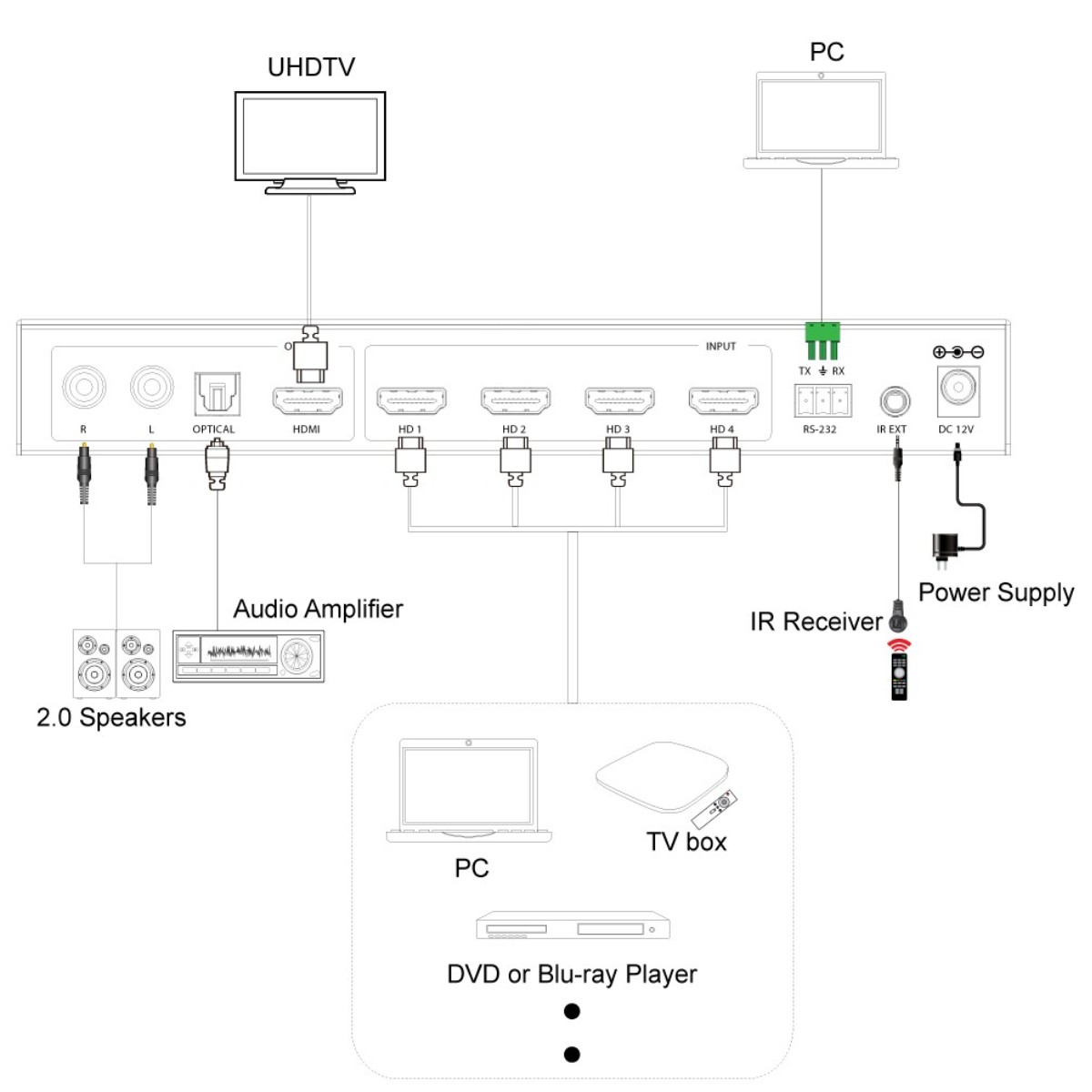 HDMI 4x1 Quad Multi View w Seamless Switcher 4K60