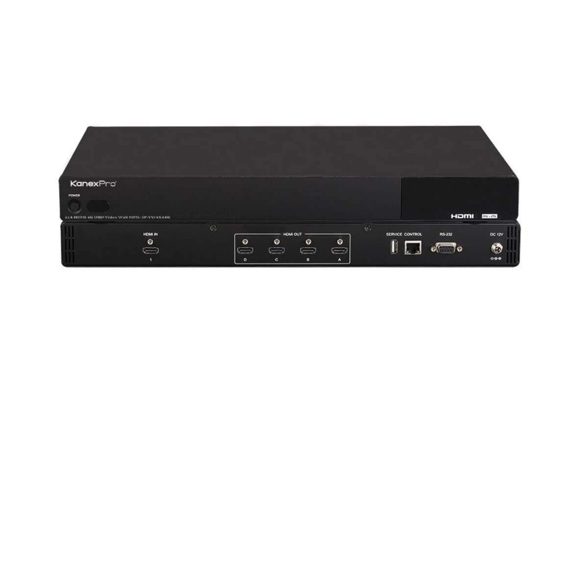The KanexPro VW-SP-1X44K is a 4K based video processor which allows one HDMI input to be freely arranged on to four 4K displays. It offers bezel correction support with a simple and easy to use control application. The device supports video output timings up to WUXGA@60 and 1080p@60Hz, audio format up to 7.1CH LPCM at 192kHz sampling rate based on input source EDID.