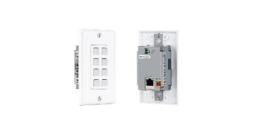 This KanexPro WP-IPKEYPAD8 is an easy to use, programmable eight button multi-purpose key pad based over TCP/IP for controlling various audio-visual devices such as DVD players, projectors, relay bases screens and much more. These keypads can send commands to any Ethernet or relay trigger controlled device in your AV system. With up to 16 physical macro buttons and up to an additional 16 software based macro buttons (8 each on singe-gang version). Pre-program and recall up to 32 (16 on the single gang) distinct macros delivering complete control over your audio and video application.
