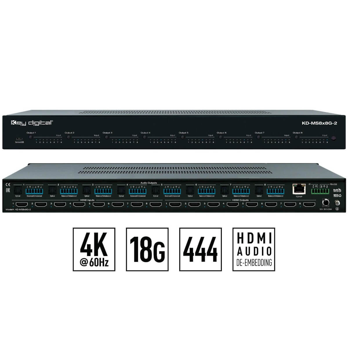 8 Input 8 Output HDMI Matrix Switch with Independent Audio Routing