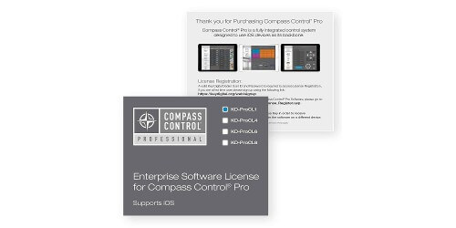 Use KD-ProCL licenses to activate your iOS devices to become live Compass Control Pro Controllers programmed with your custom project file. For Compass Controlled sites, each iOS controller requires an activation license. For Compass Control Pro Integrators and Programmers, a licensed iPad means unlimited amounts of loaded projects with favorite project retrieval from archive for ease of demonstration or system control.