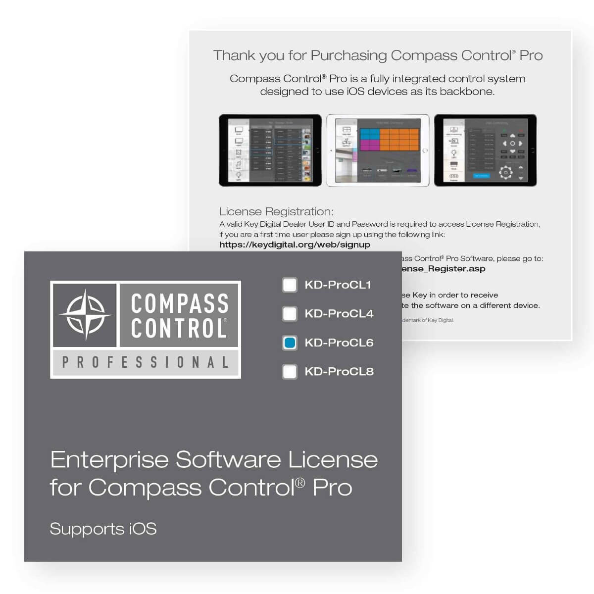 Use KD-ProCL licenses to activate your iOS devices to become live Compass Control Pro Controllers programmed with your custom project file. For Compass Controlled sites, each iOS controller requires an activation license. For Compass Control Pro Integrators and Programmers, a licensed iPad means unlimited amounts of loaded projects with favorite project retrieval from archive for ease of demonstration or system control.
