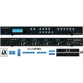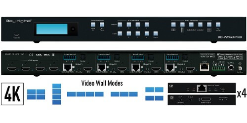 4K UHD 4 Input 4 Output Video Wall Processor and Seamless Matrix Switcher, includes 4 Rx units. Features 5 Video Wall Modes, independent AV routing, mirrored HDMI and UHDoTP outputs.