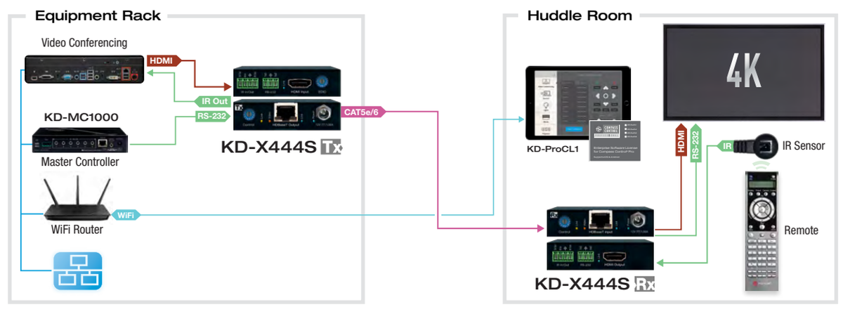 - Up/Down IR: Two channels of IR enable control to/from devices or control systems connected to Tx and Rx units