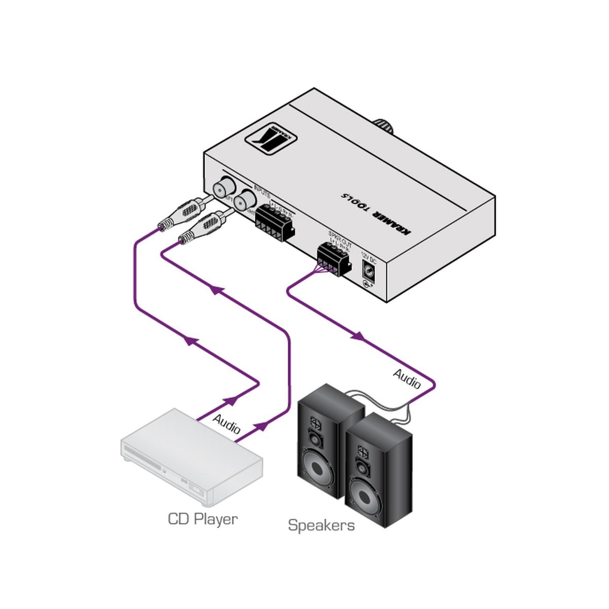 - Inputs: 1 unbalanced stereo audio on RCA connectors, 1 balanced stereo audio on a 5 pin terminal block connector