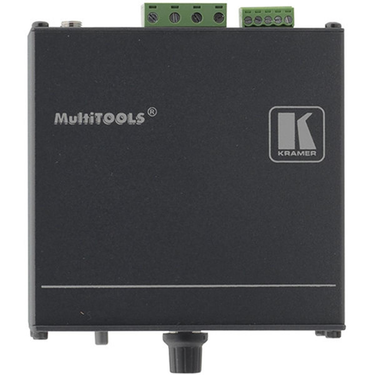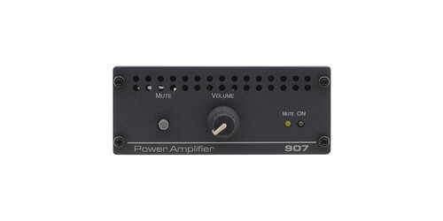 The 907 from Kramer is a high-end power amplifier for line-level stereo audio signals. This device will accept a balanced stereo audio signal on a terminal block connector and deliver 40 watts per channel in to an 8Ω load. With a high-efficiency class D operation, the 907 has standard features and controls, including Gain Control Dip-Switch, volume control and mute button, as well as mute and "On" LED indicators. This power amplifier is perfect for use in presentation rooms and multimedia applications for quick, local audio amplification as well as personal audio listening.
