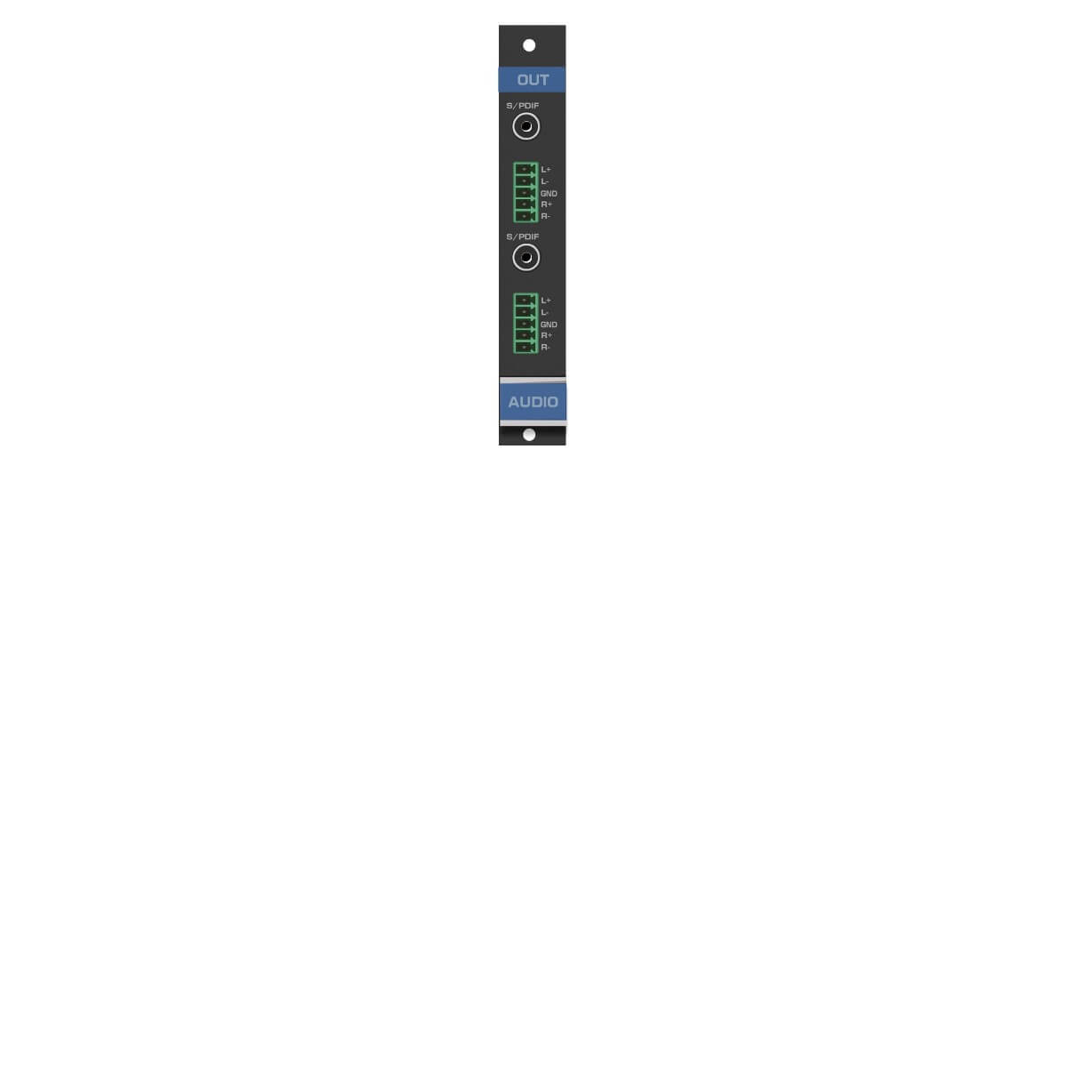 AAD−OUT2−F16 is a two−channel analog and digital output card for the VS−1616 Series Modular Multi−Format Digital Matrix Switchers. The AAD−OUT2−F16 outputs two analog and digital signals from the chassis.