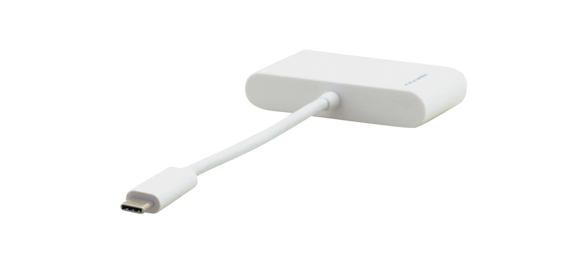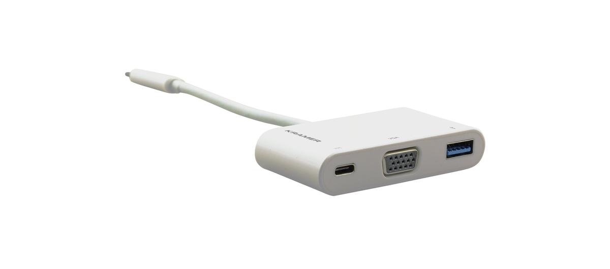 The Kramer ADC-U31C/M1 is a high-performance USB 3.1 Type-C to Multi-Format (multi-port) Adapter. This adapter features a USB 3.1 Type-C connector on one end, and a VGA, USB 3.0, and PD (power delivery) connection on the other end. It will support resolutions up to 1920 x 1200 or 1080p at 60Hz on the VGA video output to any VGA display or projector. The USB 3.0 port is included to charge/sync your smartphone or connect other legacy devices such as an external USB hard drive or hub. With the female PD USB-C port this adapter will also support fast charging (up to 60W) for your laptop using pass-through power. It is compatible for use with both Mac and Windows and is a true plug and play device (bus powered). The ADC-U31C/M1 from Kramer is an excellent and affordable device to mirror or extend a computer display work space and comes backed by a 7 Year warranty from Kramer.