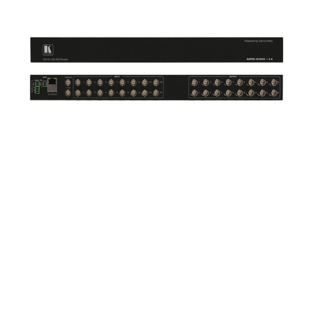 ASPEN-1616UX is a 16x16 matrix switcher for SDI signals of up to 12G. It equalizes the input signal and reclocks the output signal to gain extended-reach signal extension. ASPEN-1616UX is easy to operate and control through the network using the intuitive web pages and through RS-232 using a serial controller.