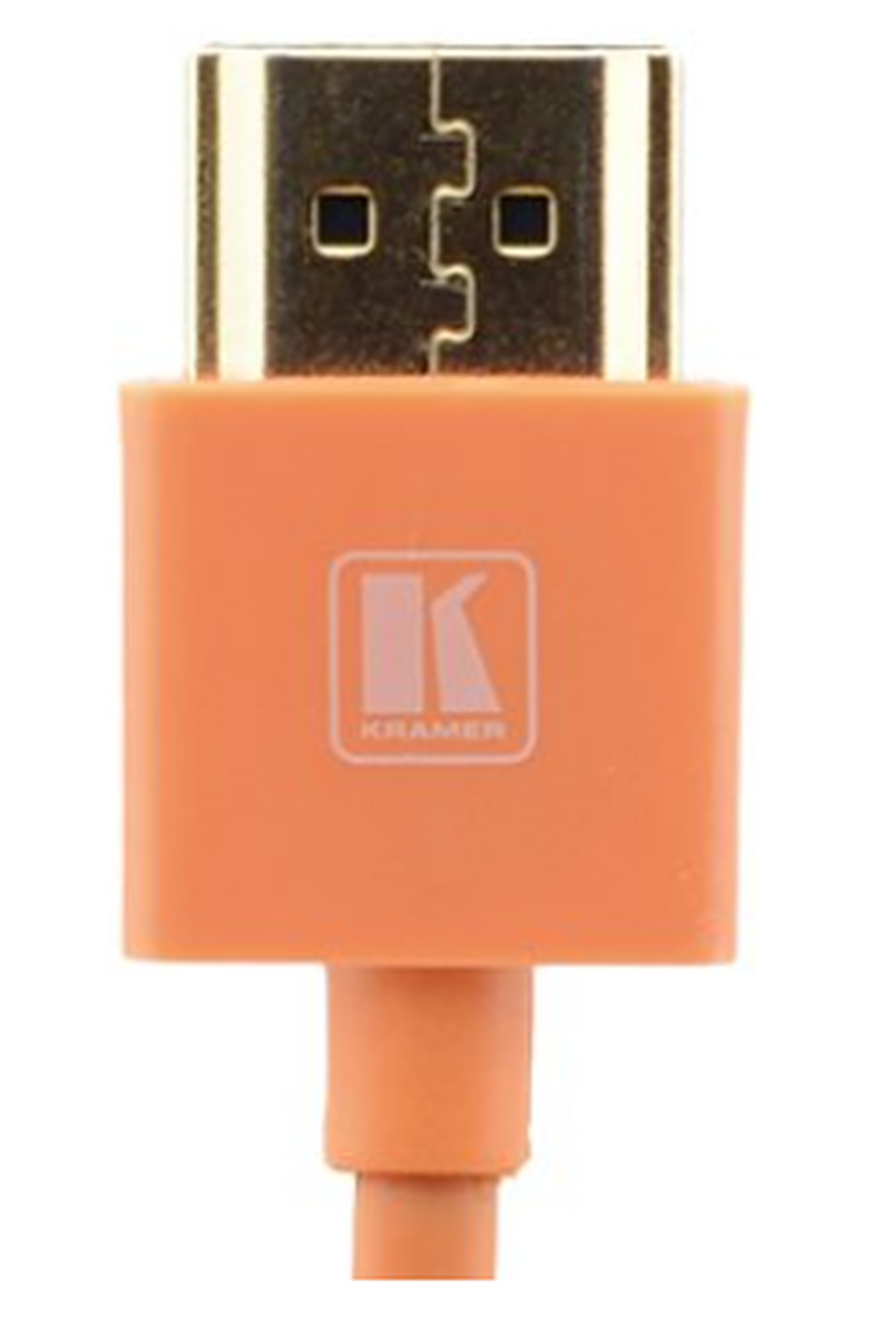 The Kramer C-HM/HM/PICO/OR-3 is a flexible, ultra thin micro HDMI cable that is designed for tight spaces or to save space on tables. It supports signals up to 4K@60Hz (4:4:4) UHD, HDMI Ethernet Channel, 3D, x.v.Color, Deep Color, Lip Sync, HDMI Uncompressed Audio Channels, Dolby TrueHD, DTS−HD, CEC. This HDMI is a true space saver, with a tighter bend radius and low profile connector can save up to 1" of depth behind the equipment. Also providing an uncompressed digital link between consumer electronics such as DVD players, set-top boxes and audio/video monitors like plasma display screens for high-definition TVs. All backed up by a 7 year warranty.