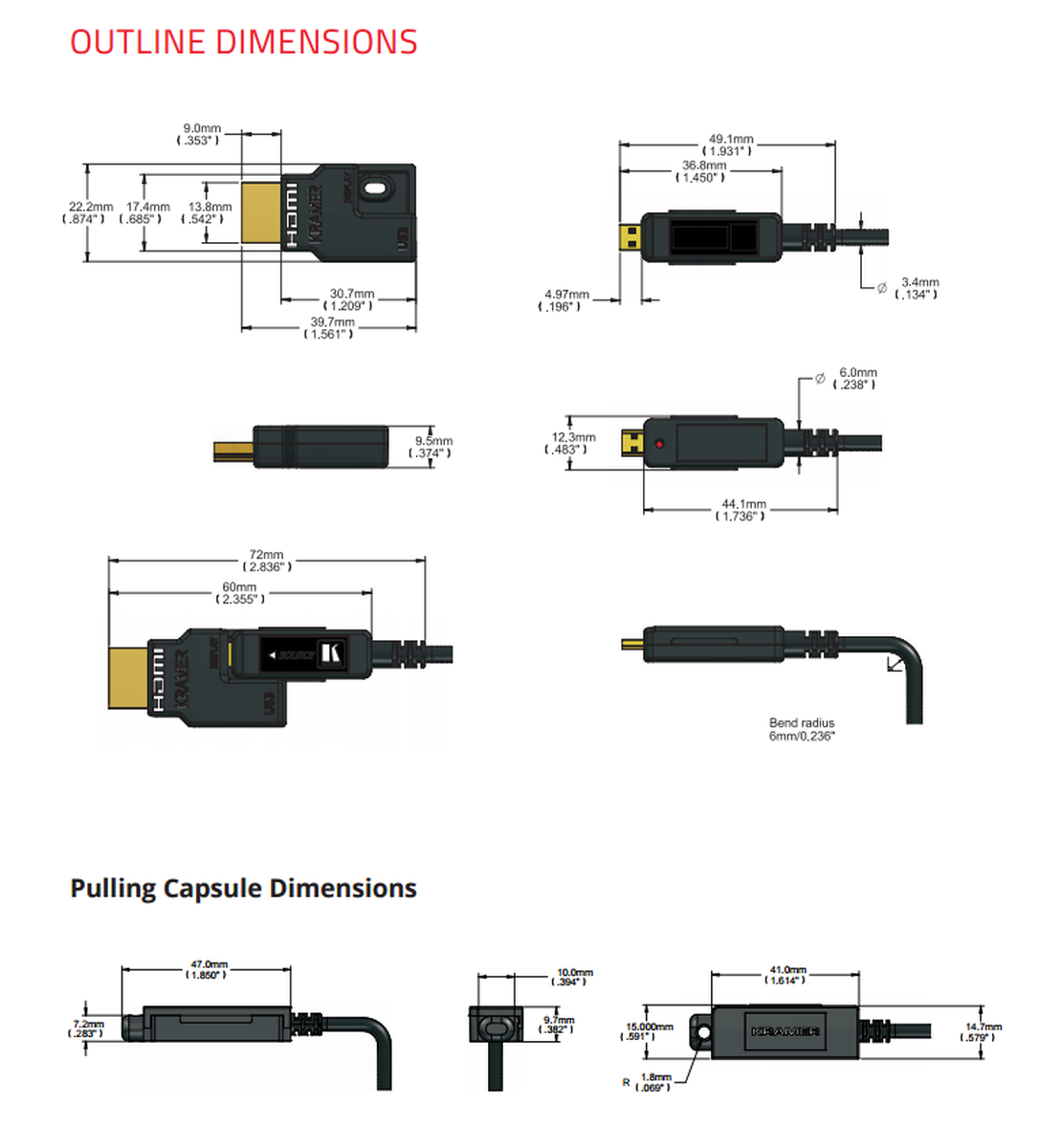 - Detachable HDMI ends to allow for smaller head profile during installations in tight spaces, used in conjunction with included pulling capsule