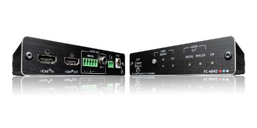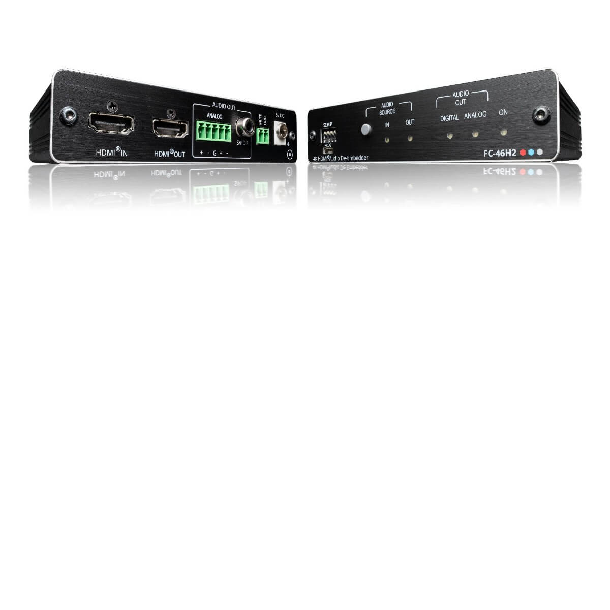 The FC-46H2 is a professional HDMI audio de-embedder for HDMI signals up to 4K@60Hz (4:4:4) resolution. The unit de-embeds the audio signal from the HDMI input or from the HDMI output ARC (Audio Return Channel) and simultaneously outputs it to the S/PDIF and 5-pin balanced audio outputs.