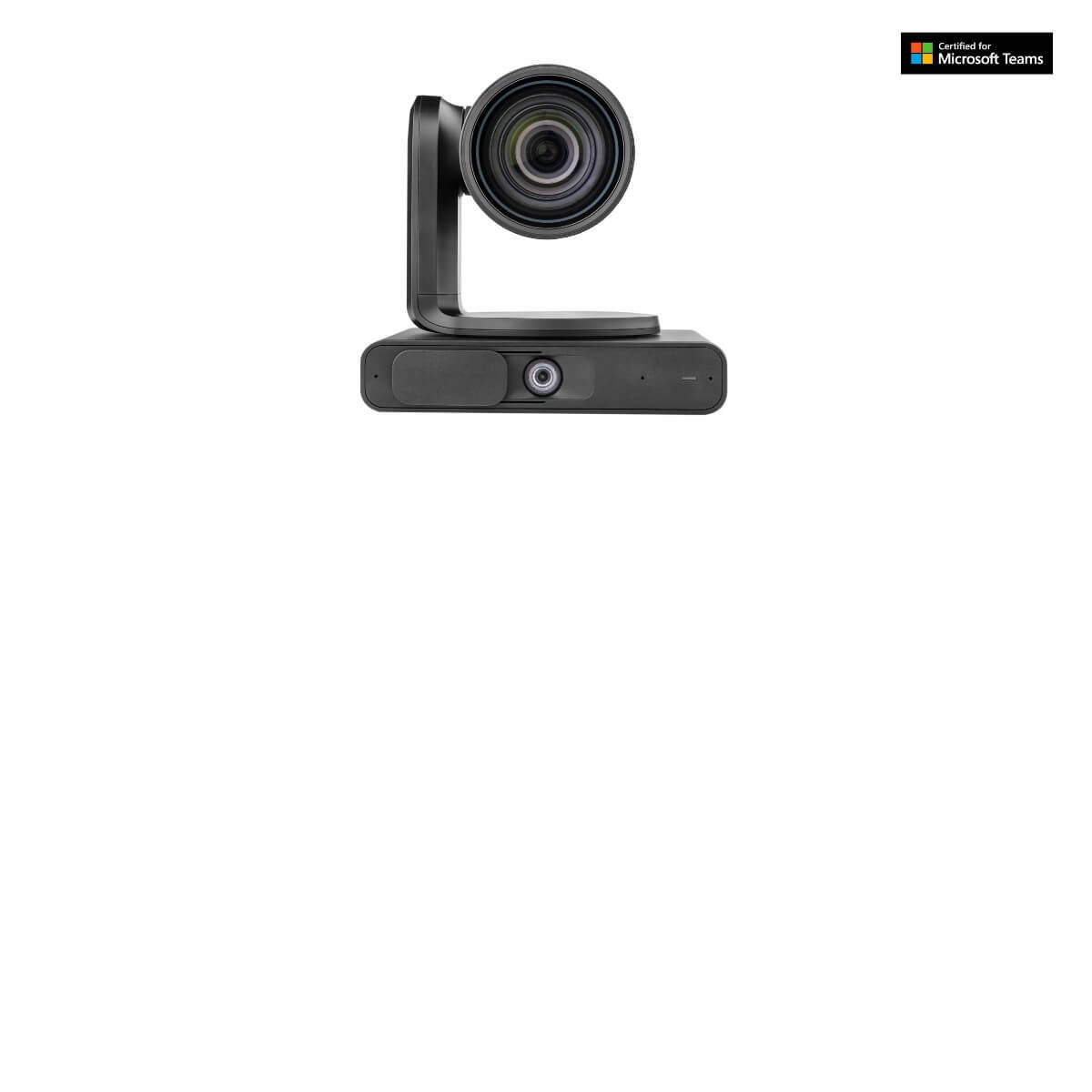 The KAC-CAM-70 is a Microsoft certified cutting-edge dual 4K lens PTZ video camera for medium to large meeting spaces. Featuring a 12x optical zoom close-up lens, a second wide angle 119º DFOV panoramic lens, and an integrated microphone array for direction assistance, the KAC-CAM-70 ensures an exceptional video experience for all participants. Its advanced AI-driven features, including auto-framing, speaker tracking, and advanced smart gallery, ensure that remote participants can clearly see the full expressions of everyone in the conference room, even those seated at a distance. What sets the KAC-CAM-70 apart is its superior wide-angle sensor, which, when paired with our KAC-CU-200 MTR system, it provides a complete room view alongside a focused PTZ stream. Both video feeds are efficiently managed by the KAC-CU-200, ensuring seamless coverage for an exceptional meeting experience.Designed to complement Kramer's solution bundles for medium-large Microsoft Teams Rooms, the KAC-CAM-70 plays a pivotal role in creating a highly optimized environment for hybrid Teams meetings.