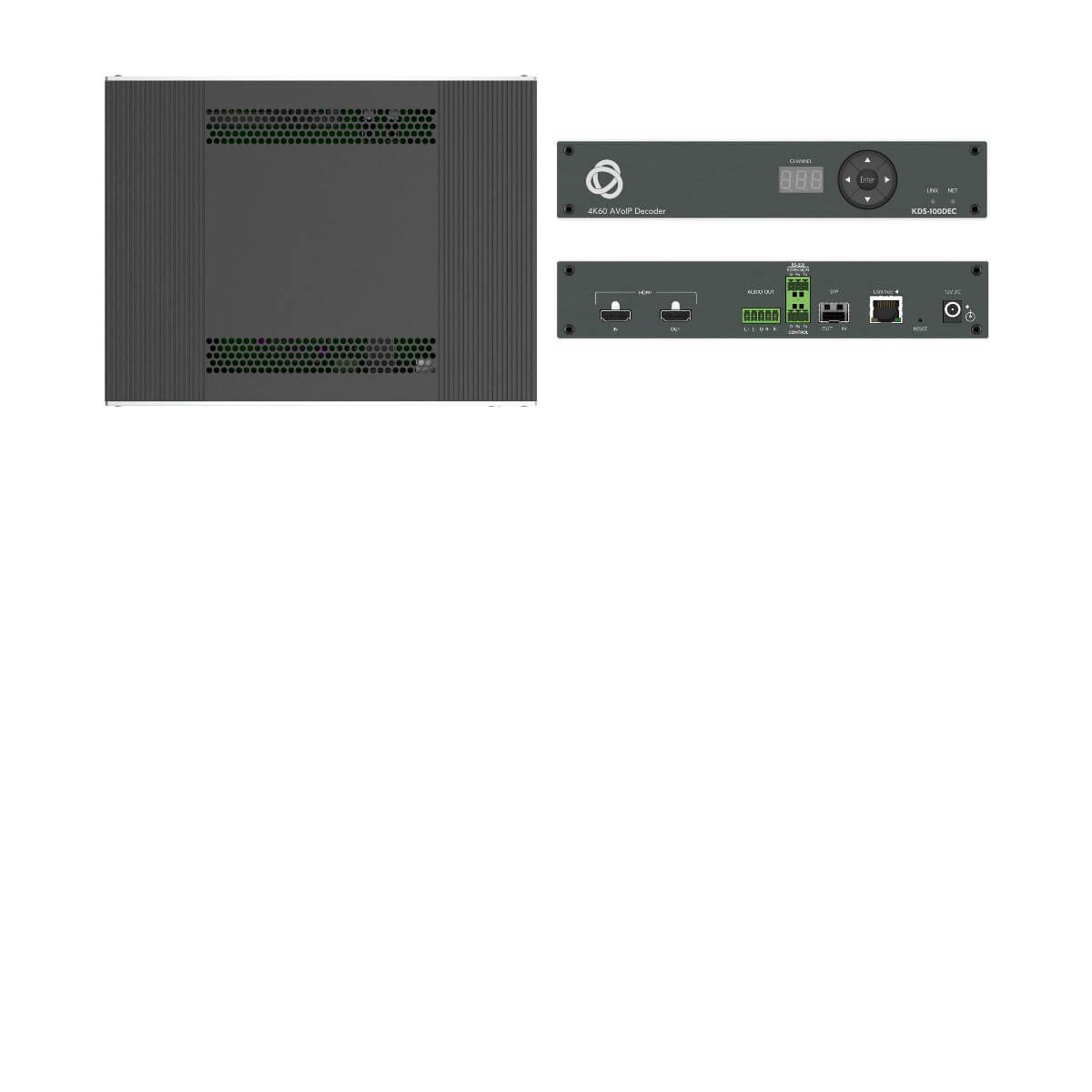 KDS 100DEC is a professional AVoIP decoder designed to render high quality 4K video from open standard H.264/H.265 streams over standard 1GbE networks. It delivers pristine images to local HDMI displays with ~40ms end-to-end latency (when paired with KDS 100 encoders), ideal for command rooms, monitoring walls, and operator desks.