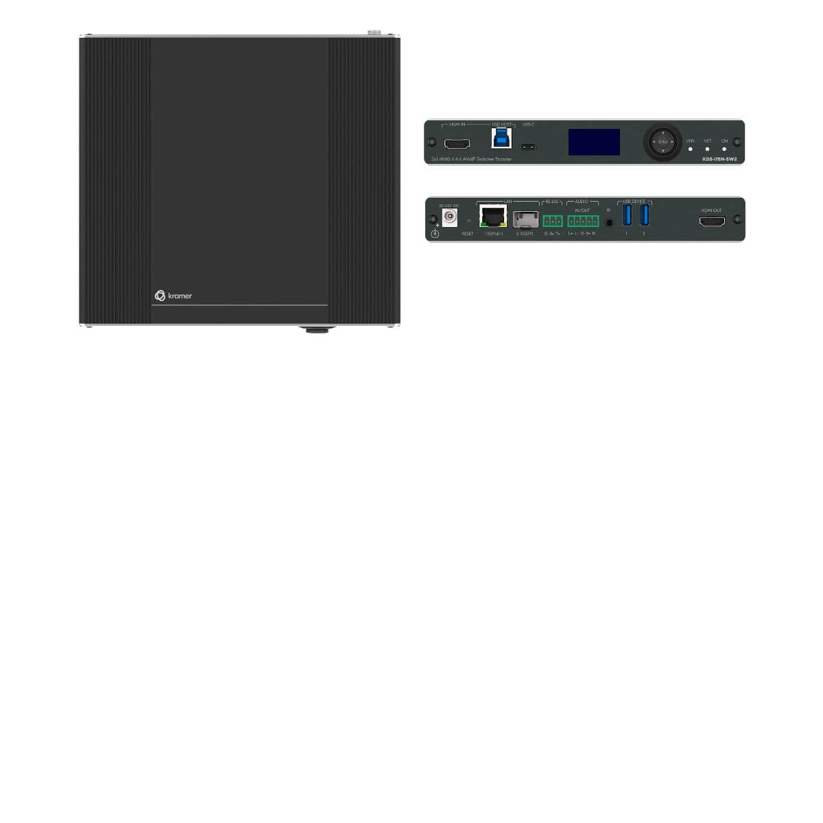 KDS-17EN-SW2 2x1 4K60 4:4:4 AVoIP Switcher Encoder with Dante for streaming 4K video and audio signals, via Ethernet over copper or optical cable in unicast (one-to-one) or multicast (one-to-many) configurations. Supports audio Dante, USB, IR, RS-232 or CEC signals.