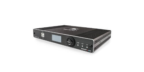 The Kramer AV KDS-EN7 is simple to deploy using its plug-and-play feature on existing IP networks with Netgear M4250 AVoIP switches, Kramer Control, KDS-USB2, or other devices with similar specifications.