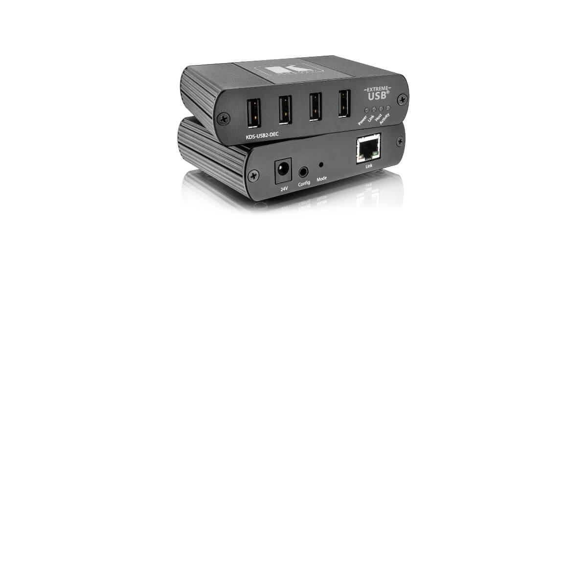 KDS-USB2-DEC is a USB 2.0 high-speed decoder for extending USB signals between a host computer and any USB peripheral device such as a mouse, keyboard, display, camera, mobile device, media player, or hard drive. Connect up to 4 USB devices to KDS-USB2-DEC to enable communication with the host computer connected to a KDS-USB2-EN encoder (sold separately).KDS-USB2-DEC can be paired with one KDS-USB2-EN encoder for basic one-to-one USB extension, but with the purchase of additional units, you can diversify your USB extension system. For example, connect USB cameras in multiple locations to one computer or enable users in multiple locations to collaborate using the same host computer over a Local Area Network (LAN), in real time, using their own keyboards, mice and touch screens. Using Kramer's cloud-based control platform, you can map and/or control these multi-unit setups.