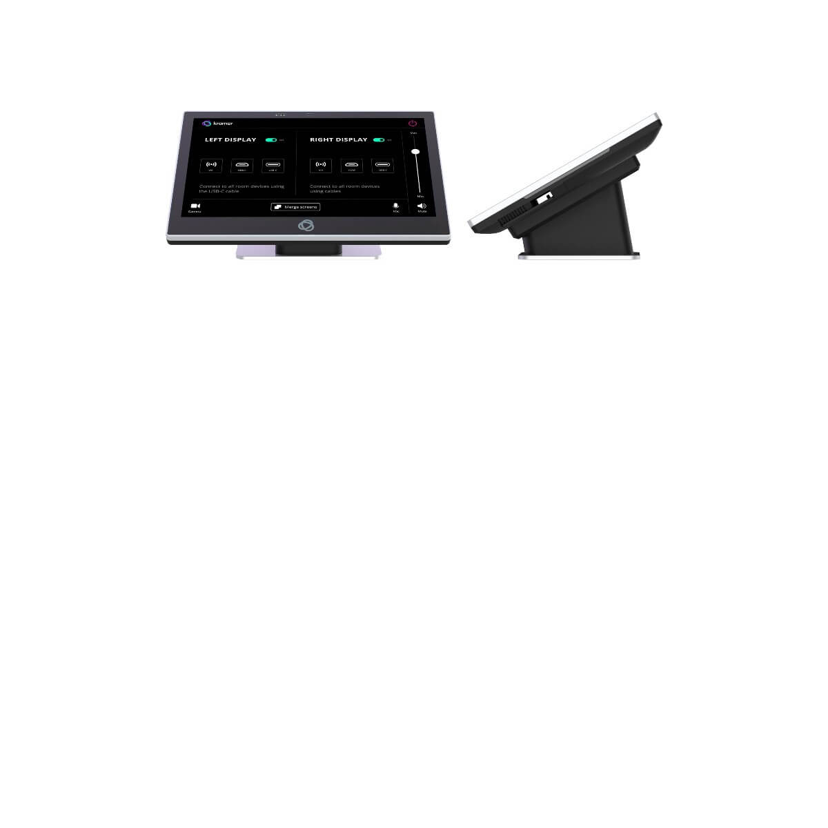 KT-2010 is a new powerful, 10-inch, IPS, multi-touch, touch panel with 1920x1200 resolution. Elegantly designed for decorative room integration, this portable touch panel can be deployed either on a tabletop or wall. KT-2010, with the latest Android 11, supports wired PoE (Power over Ethernet) and advanced Wi-Fi connectivity options. The touch panel has a built-in speaker and camera and comes either with a tabletop or a wall mount. The touch panel is easy to assemble, using elegant wiring, secured mounting, reliable operation and flexible deployment. KT-2010 is a touch panel that is ideal for any 24/7 Kramer-supported commercial AV or control application and features a user-friendly, fully customizable graphical user interface configured by Kramer software.