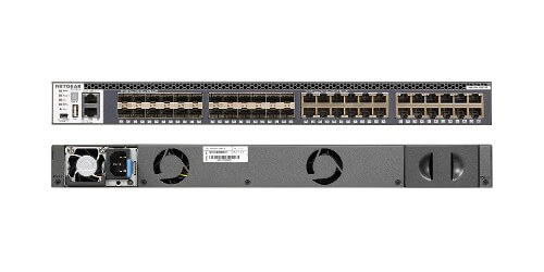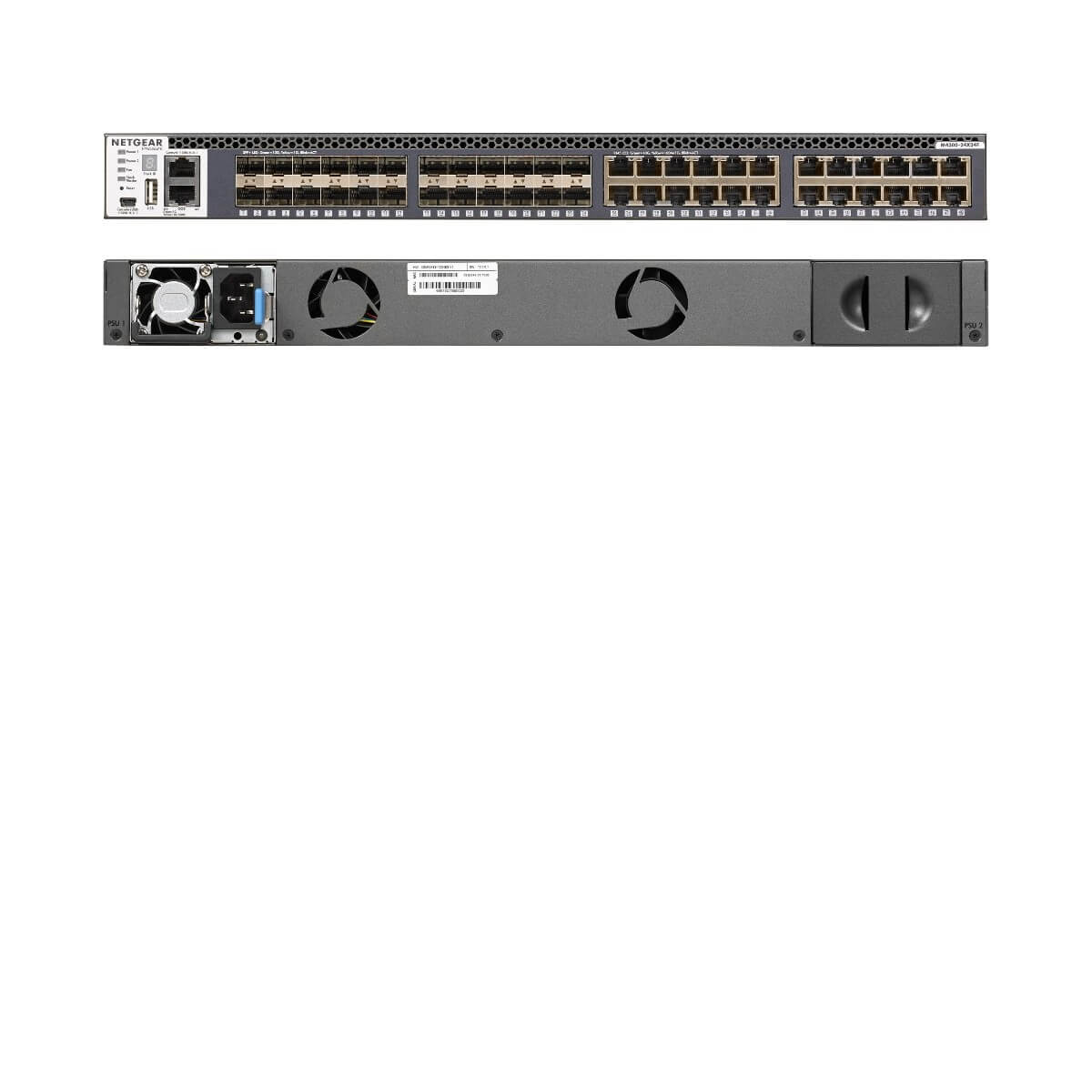 NETGEAR M4300-24X24F is a NETGEAR 48-port managed switch used as a backbone switch for multi-tier AVoIP deployments. It features 24 10GBASE-T (copper RJ-45) ports, 24 10GBASE-X (fiber SFP+) ports and includes a 250W power supply unit.