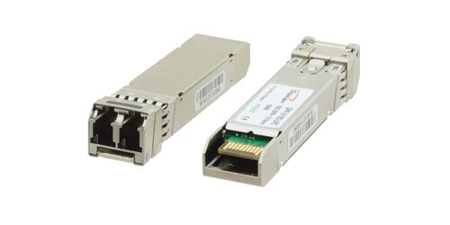 OSP−SM10 is a fiber optic transceiver for 1310nm single−mode signals. This standard pluggable SFP+ module has two LC connectors for reception and transmission signals over two strands of single−mode optical fiber.