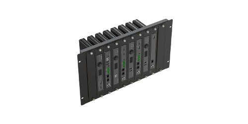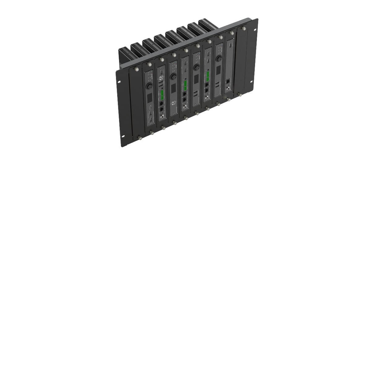 RK-10MT is a 19-inch rack mount for up to 10 Kramer KDS-7 devices into a 6U rack space.