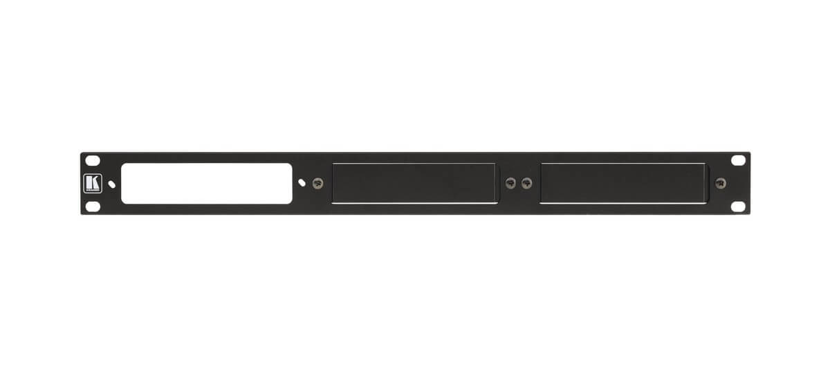 RK-3T-B is a 19-inch rack adapter for mounting 3 Kramer TOOLS size devices in a 1U rack space.