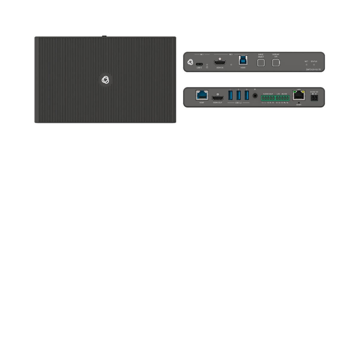 SWT3-21-HU-TR is a high-performance auto-switcher with one USB-C and one HDMI/USB input, HDMI output and long-range HDBaseT 3.0. The HDBaseT 3.0 port is configurable as either transmit (output) or receive (input) link. The unit extends a 4K60Hz (4:4:4) HDMI, USB 2.0, RS-232, IR and I/O signal over a 40 meter twisted pair cable. The local and remote connected USB peripherals, such as a room camera and microphone, are switchable for use of the switcher active USB host, for convenient hybrid meeting operation with both room and online participants. The unit is ideally deployed either at the presentation source end or at the display end.