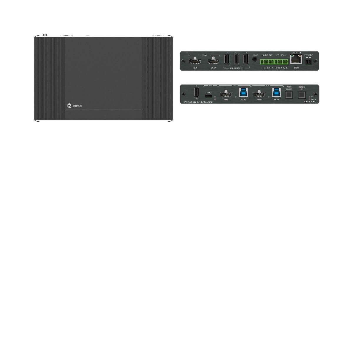 SWT3-31-HU is a high-performance auto-switcher with one USB-C and two HDMI/USB inputs and HDMI output. The connected USB peripherals, such as a room camera and microphone, are switchable for use of the active USB host, for convenient hybrid meeting operation with both room and online participants.