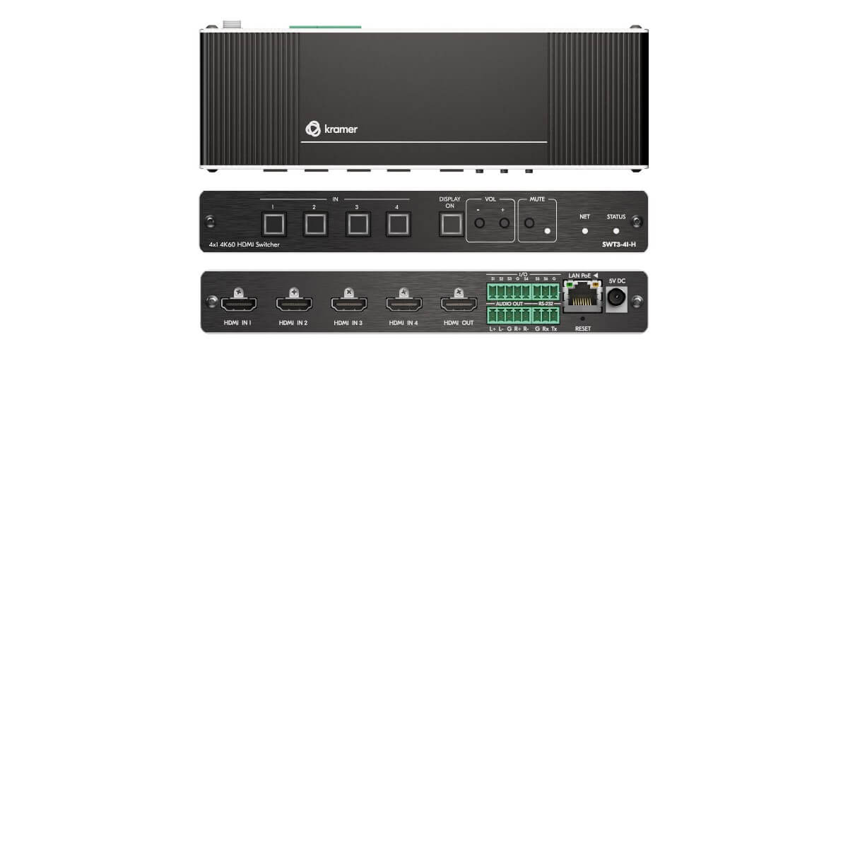 SWT3-41-H is an intelligent 4x1 automatic switcher for 4K60 4:4:4 HDMI video signals, with plug and play user experience such as priority or last-connected auto-switching based on active video signal detection, and easy remote IP-driven management and control.