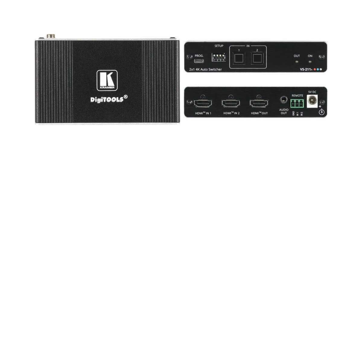 The Kramer Electronics VS-211X is a high-performance 2x1 automatic switcher for 4K HDR, HDMI video signals. Offering priority and last−connected switching options, it automatically switches according to the selected switching scheme based on active video signal detection.