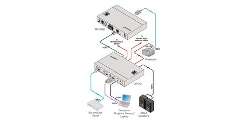 The Kramer DIP-20 is a multi-format switcher that can accept 2 HDMI and 1 VGA connections, they can be manually selected from the front panel or via auto switching. When using auto switching it detects the last plugged in signal and will automatically switch and make that the active input. The switcher can accept 4K resolutions for the latest in Ultra High Definition content. The HDBaseT out can send your signal long distances over a single Ethernet cable. The Kramer DIP-20 not only sends your video but also your embedded HD audio. It can also send Ethernet and your RS-232 for your system control needs. The switcher also features an audio de-embedder so you can send you audio out to a local amplifier.