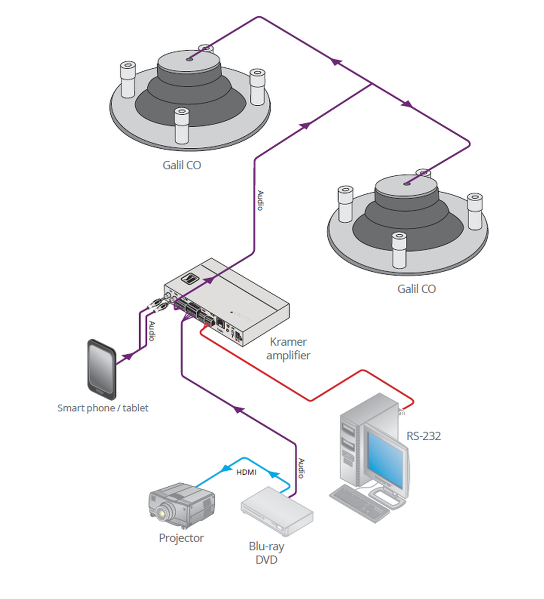 The KramerGalil 6-CO(W) is a pair of 2-way white 6.5" open back ceiling speakers that feature a multi tap power transformer for selecting direct 8Ohm or 70V/100V power settings suitable for array installation. It comes with a white baffle grill that will look nice in any conference room ceiling.