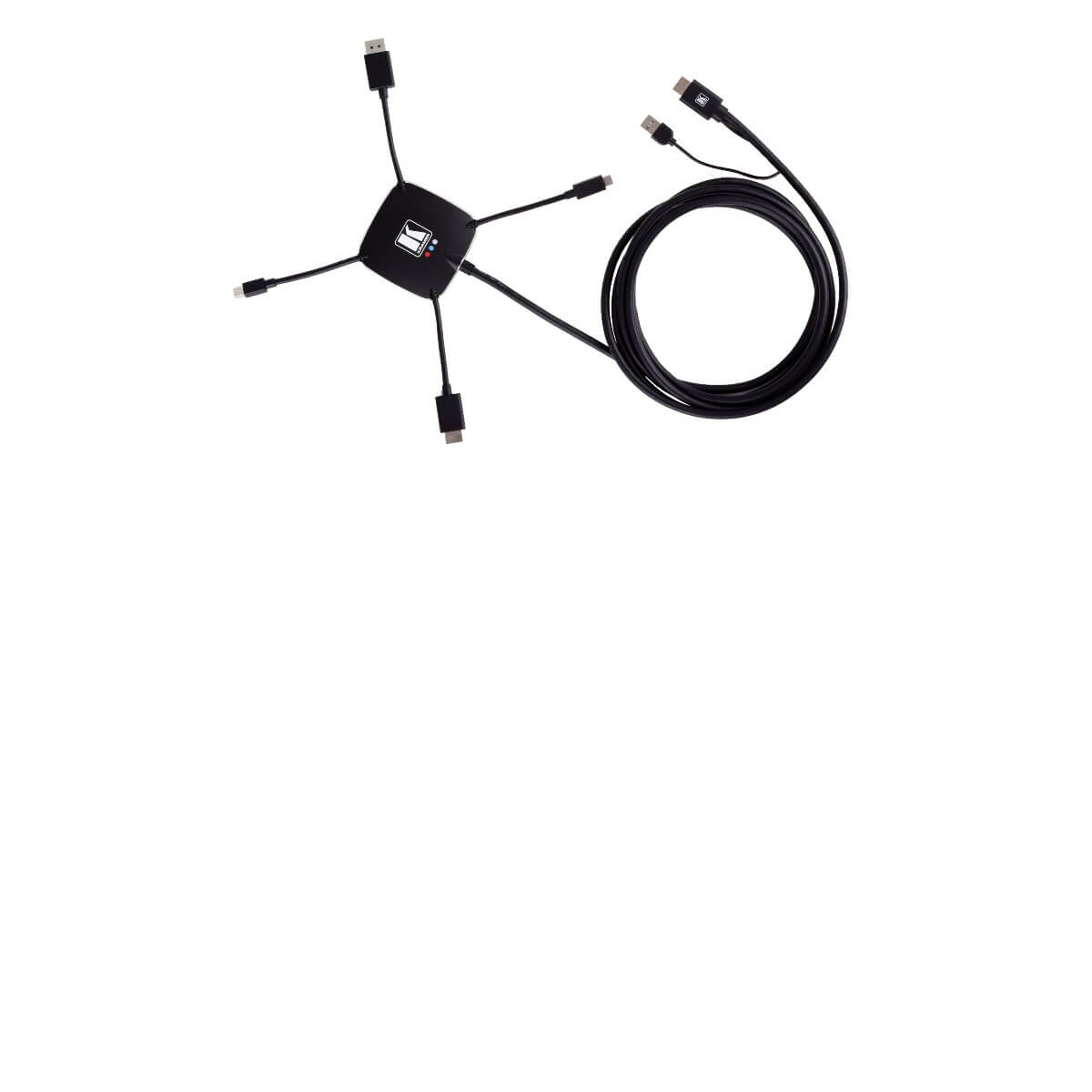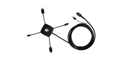 - Simplifies Equipment Requirements — Replaces multiple separate cables, adapters, and dongles with a single multi–head cable.
