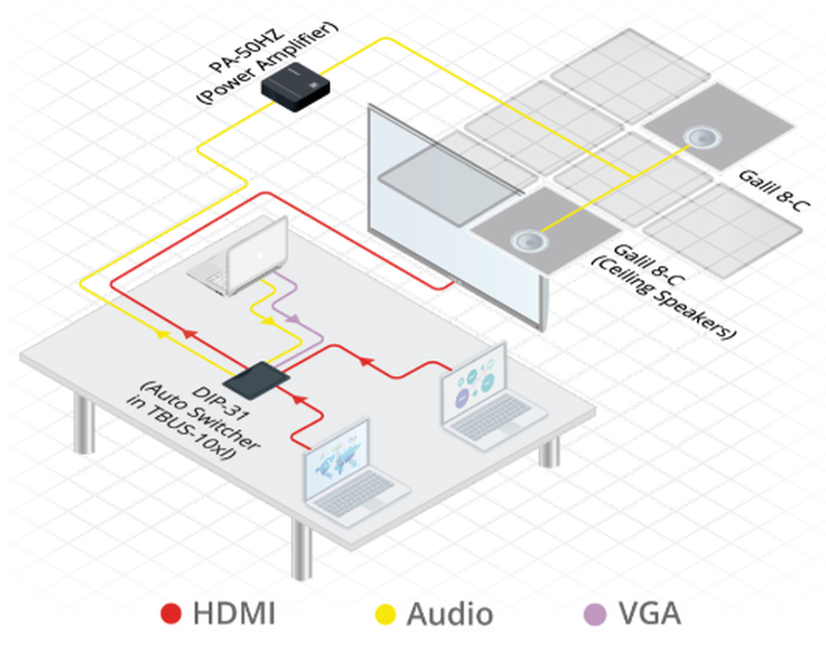 - Line level output for cascading, recording or conferencing scenarios.