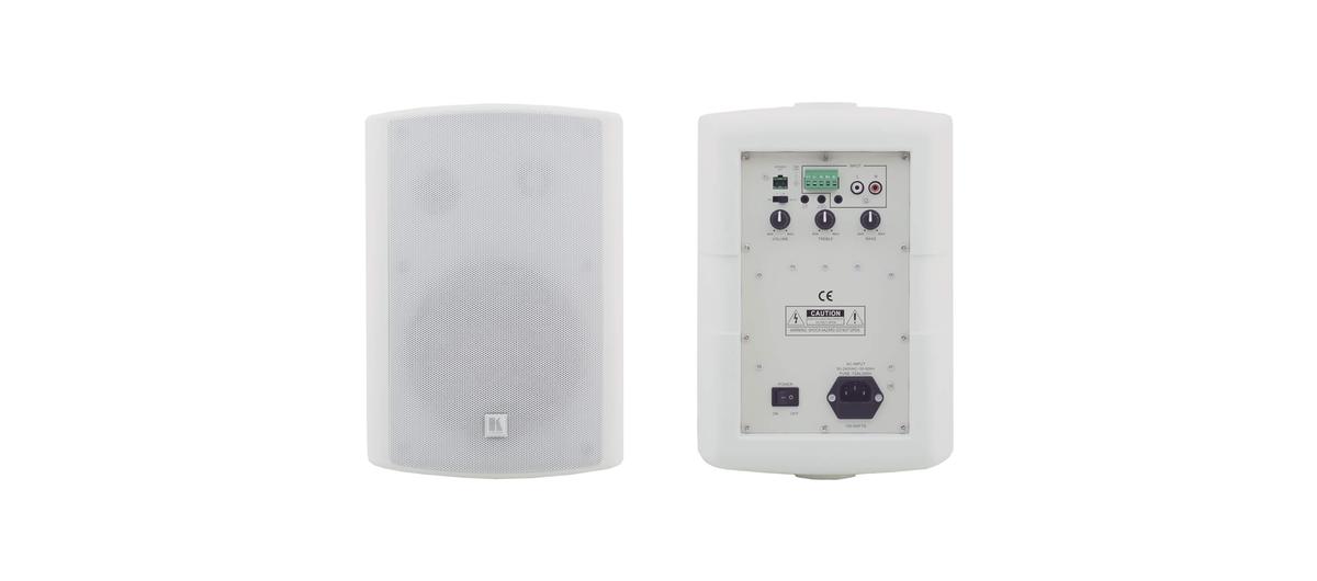The Tavor 6-O (W) by KRAMER is a pair of white 6.5" On-wall 2way Powered Speaker. Designed for indoor wall mounting these active speakers accept a line-level stereo input and amplifies it using a built-in amplifier and outputs a speaker signal to the passive speaker. These set of speakers offers audio level controls (volume, treble, bass), is magnetically shielded, enhanced bass reflex, and has an auto power feature that will automatically turn off when the system is not in use, indicated by a LED.