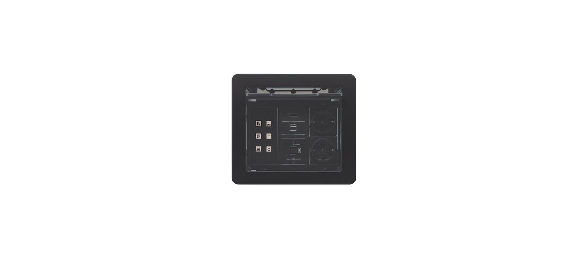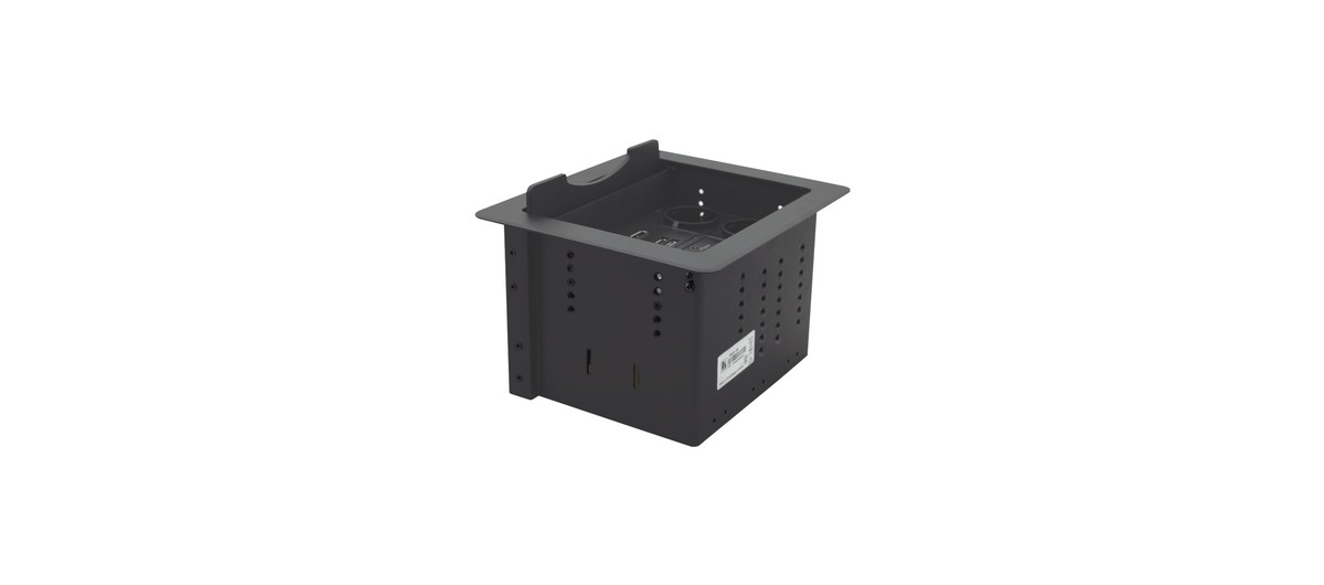 The Kramer TBUS-1N(B) is a black enclosure with a tilt up lid that allows you to configure your AV and power connections for our conference room table. A complete system requires the enclosure, an inner frame, a power socket, inserts and a power cord.