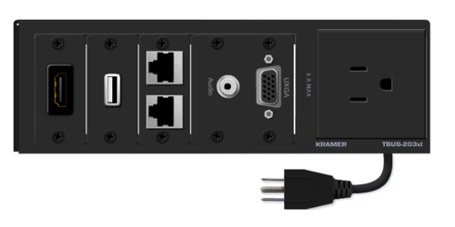 The Kramer TBUS-203XL-KIT1 is a perfect solution when you want a pop up table box that looks nice in any room and functions perfectly. The plates in the box simply screw in and can be changed at anytime in the future if your needs change.