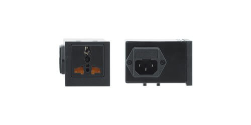 The Kramer TS-201U is a single universal power socket for the TBUS-201, TBUS-202, and TBUS-203 table box.