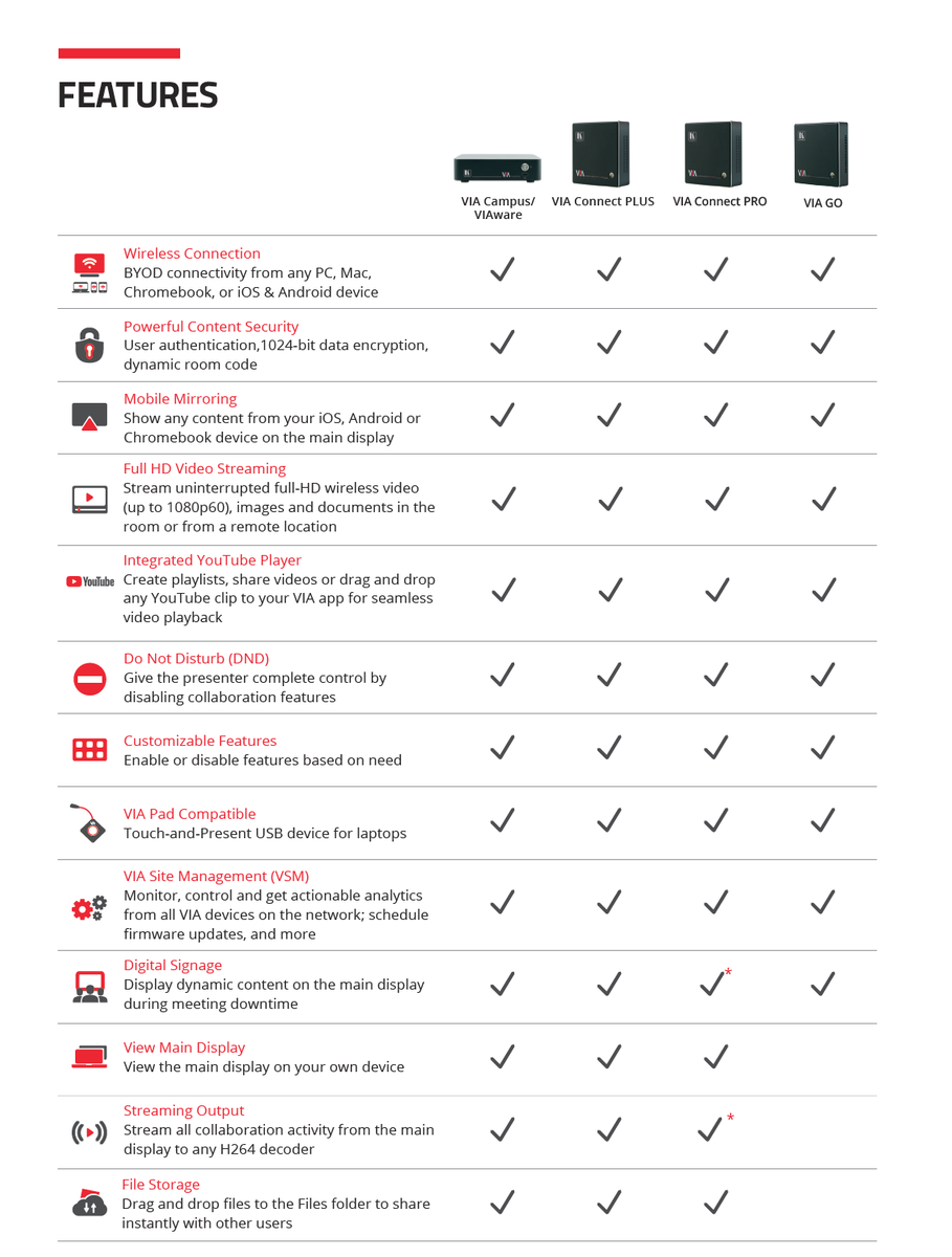 - 60fps Streaming Multimedia - Share HD wireless video streaming (using the VIA app Multimedia feature).