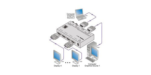 - 2x1 XGA Switcher & 1:4 Distribution Amplifier