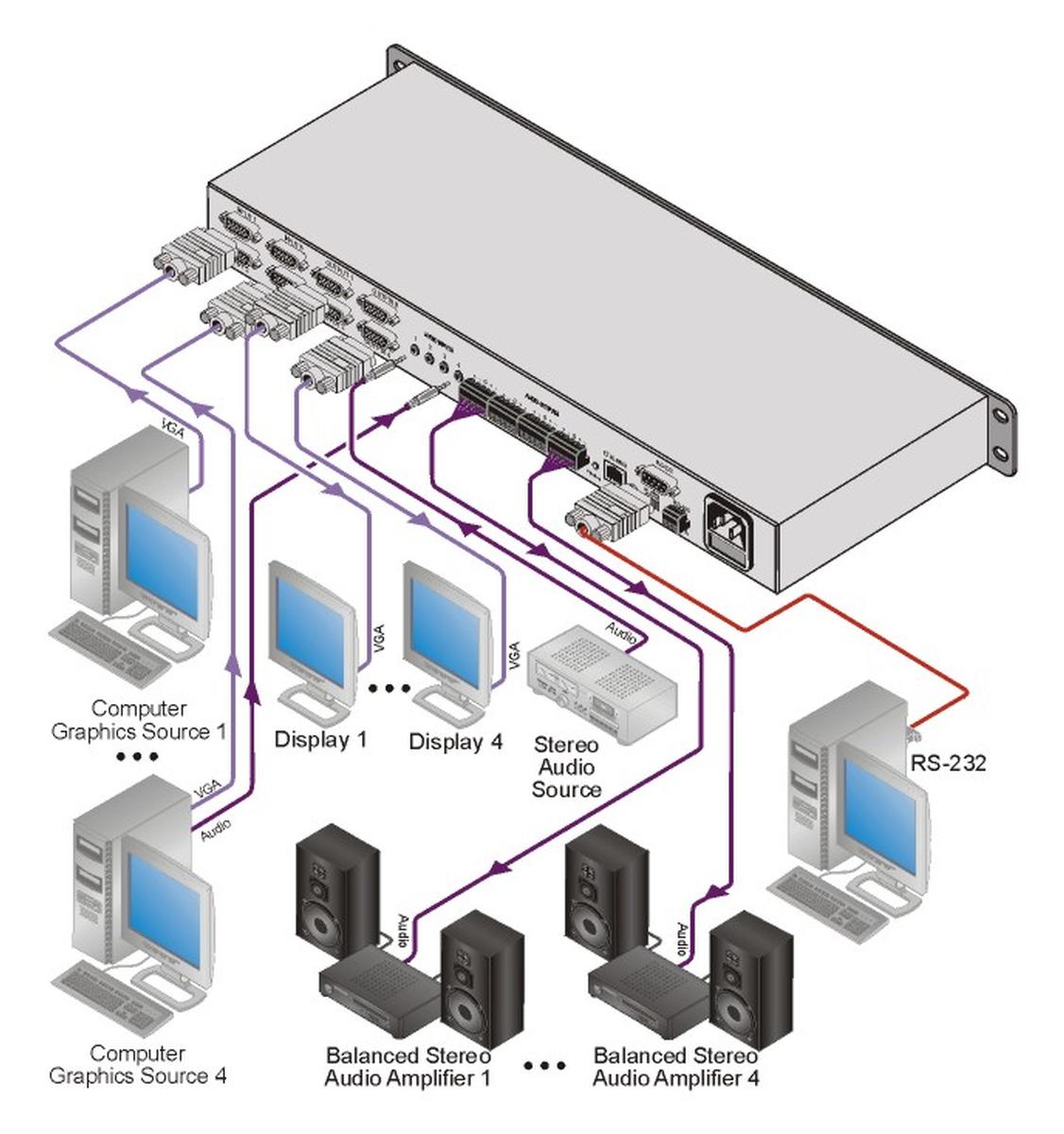 4x4 XGA & Balanced Audio Matrix Switcher with Delayed Switching