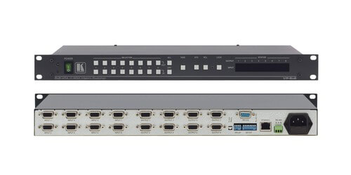 The VP-8x8 from Kramer is a high-quality matrix switcher for computer graphics video signals, with resolutions that exceed UXGA, and balanced stereo audio signals. This device has the ability to route any or all of the inputs to any or all of the outputs simultaneously. It is HDTV compatible and has a high bandwidth of 400MHz. The ideal uses for the VP-8x8 are in professional display systems requiring true 8x8 matrix operation, and is also great in multimedia/presentation source and acceptor selection applications.