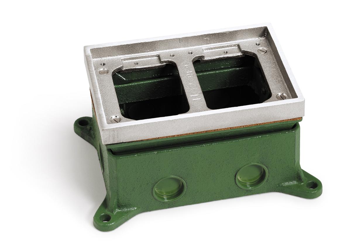 The Lew Electric 1102-58-A is a partitioned double gang deep floor box (no cover) designed for concrete installations in aluminum color. The box is deep with 13 cubic inches of space in each gang, there are six 3/4" knockouts to connect your wires. The box is a heavy duty cast iron construction and offers 3/8" of post installation adjustability for flexibility. The box can also be used for tile applications of even carpet with an optionally purchased carpet flange. Included is a temporary concrete cap for safety and protection during construction.