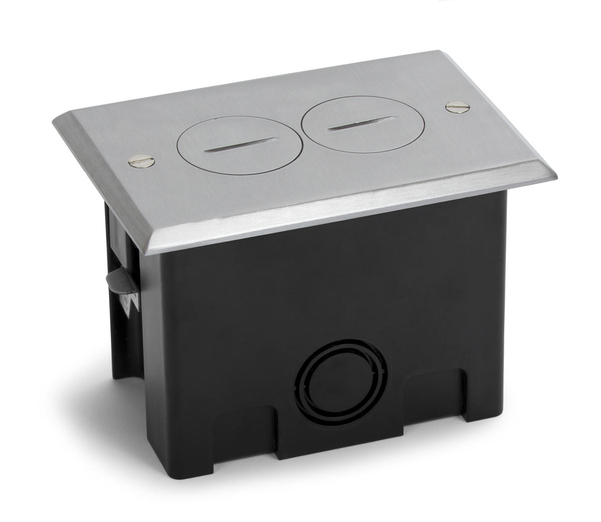 Single Gang Plastic 2 Power Floor Box w/Aluminum Cover, Screw Plug