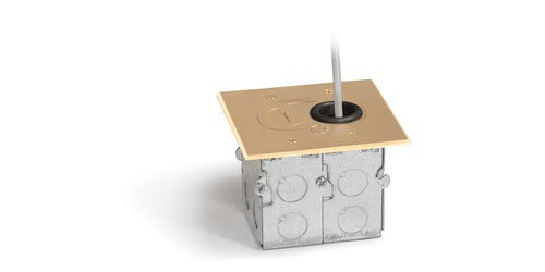 The Lew Electric RCFB-1 is a floor box that includes (2)15A tamper resistant power outlets, the top brass plate features two water tight screw plugs. The box meets NEMA WD1-1983 heavy duty requirement for display receptacles, the box and outlets are UL listed.  The box is adjustable and can accommodate any thickness floor up to 3/4".