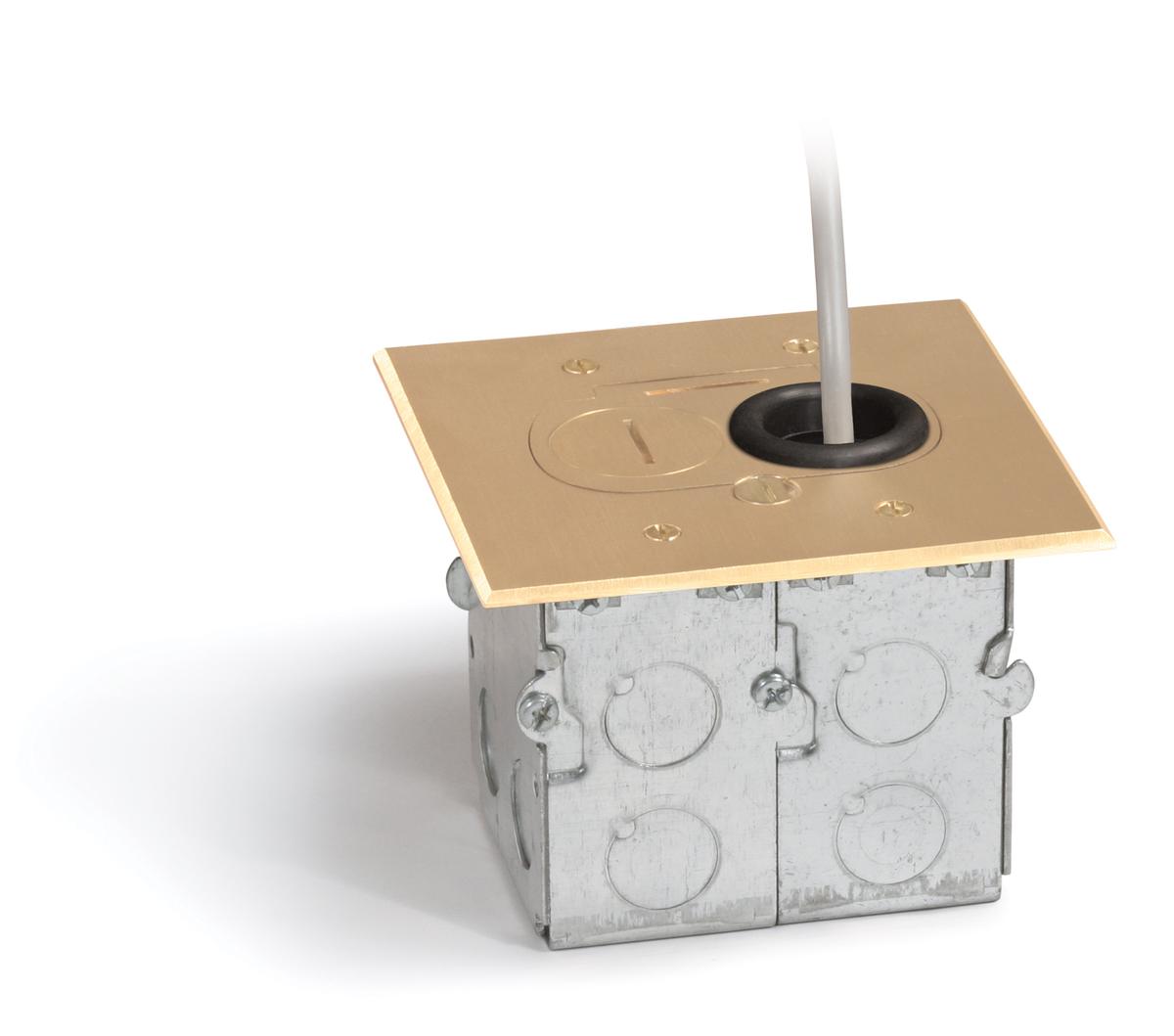 Home > Floor Boxes -> Surface Power and Data -> Square -> Lew Electric -> RCFB-1 Square Two Recessed Power Floor Box w/ 2 Screw Plugs - Brass