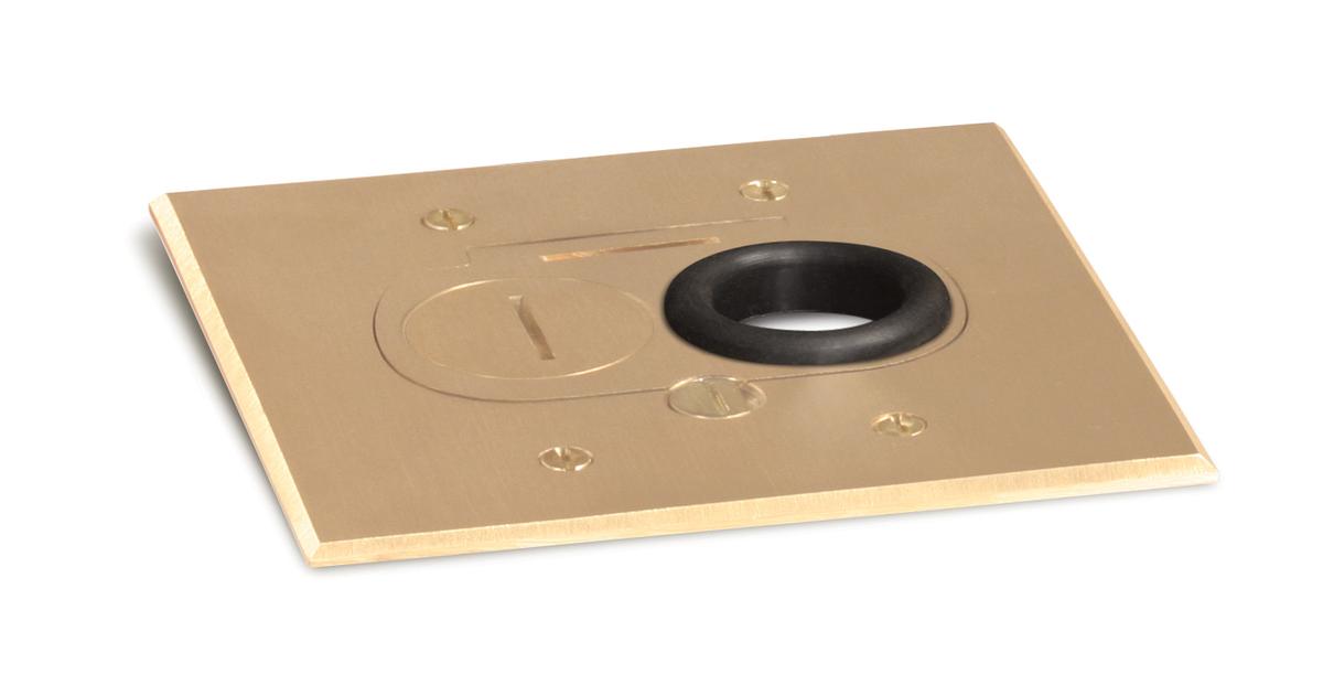The Lew Electric RCFB-1-BP is a brass floor box cover only for the RFCB-1 floor box, it includes 2 screw plugs, grommets, and screws.