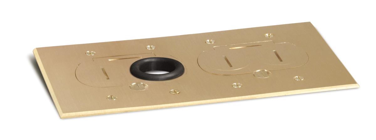 The Lew Electric RCFB-2-BP is a brass floor box cover only for the RFCB-2 floor box, it includes 4 screw plugs, grommets, and screws.
