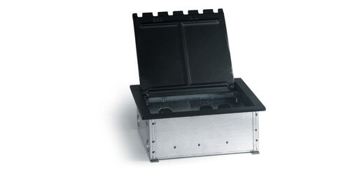 The Lew Electric RF10C66 is an affordable high quality raised access floor box that allows cables to be plugged in with the lid closed.