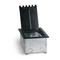 The Lew Electric RF9C4F is a floor box designed specifically for raised floors and stages. Included is a heavy duty cast aluminum black lid, when closed there are 5 gaps for cables to pass through while they are still connected inside the box.